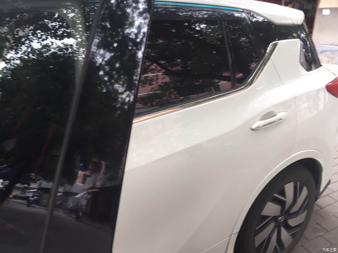 广汽传祺ge3的外观城市代步还是很好看,有很多三角形的元素,包括led的大灯和下面雾灯,有辨识度。18寸的米其林轮胎,轮毂是风火轮得样子,媳妇看见就太爱了,还能减少风阻,也是买这款车的理由之一。悬浮式车顶,ev电动车小名牌,象征着新能源车的身份,还能提示车子充电的一些信息。