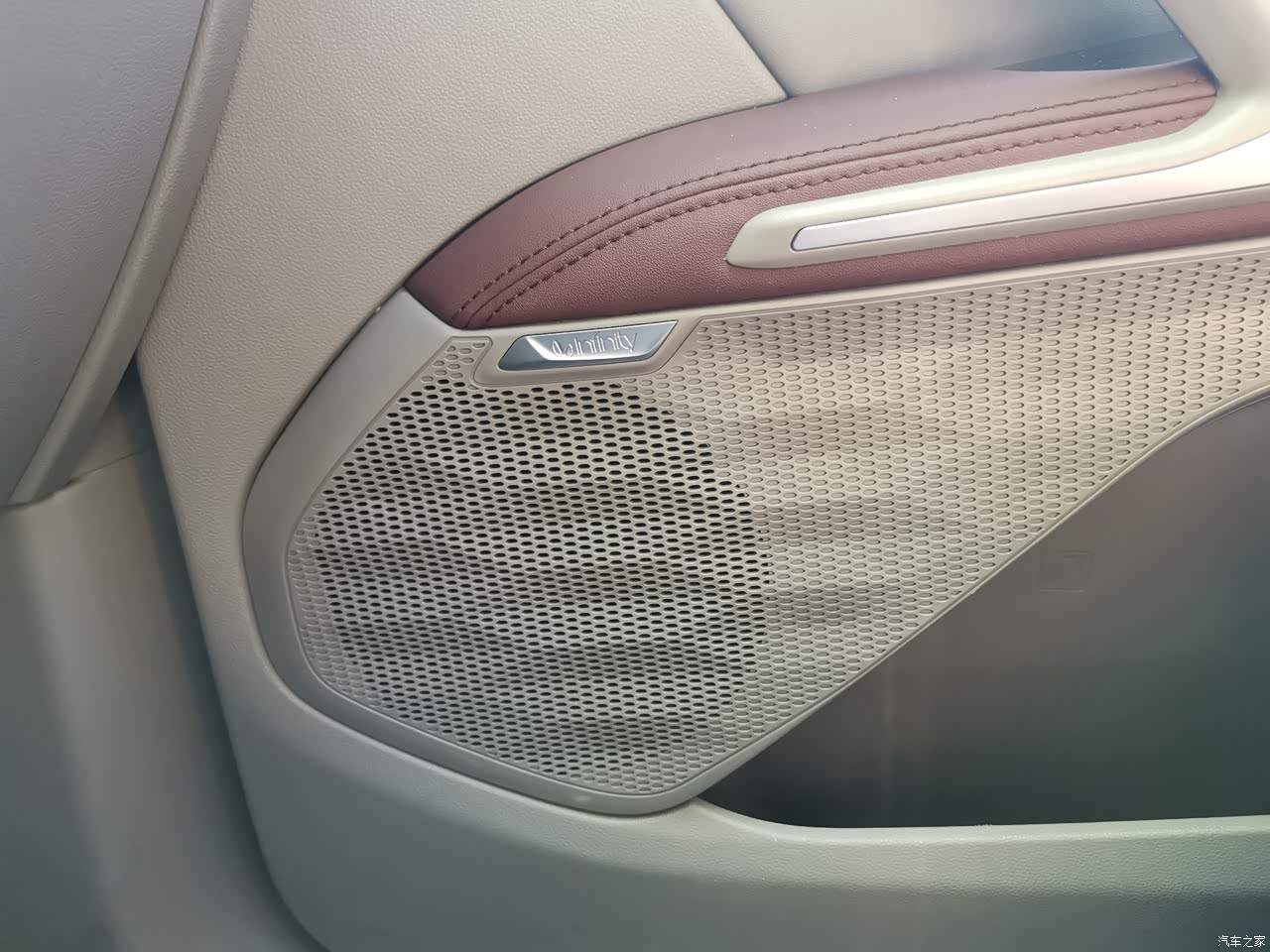 哈曼infinity:全车九声道哈曼音响。八个扬声器外加一个低音炮,音质杠杠滴。