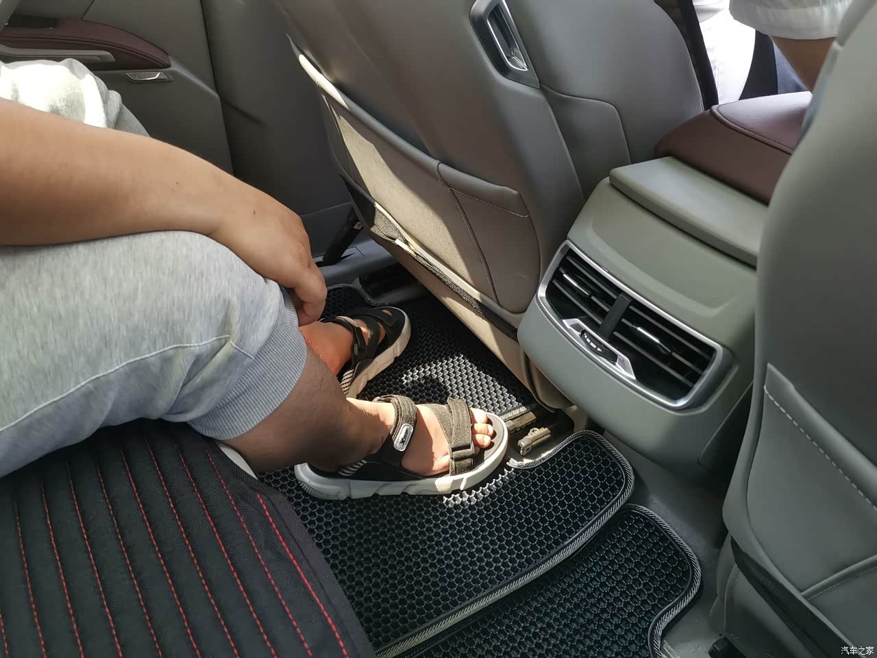 空间还是不错的,前排空间很宽裕,只要不是过于高大健壮的体型基本都没有问题,后排纯平设计即使坐三个人也不显得拥挤。像我哥们的身材坐在后面完全足够,还有很大的活动空间,家用出行完全OK。