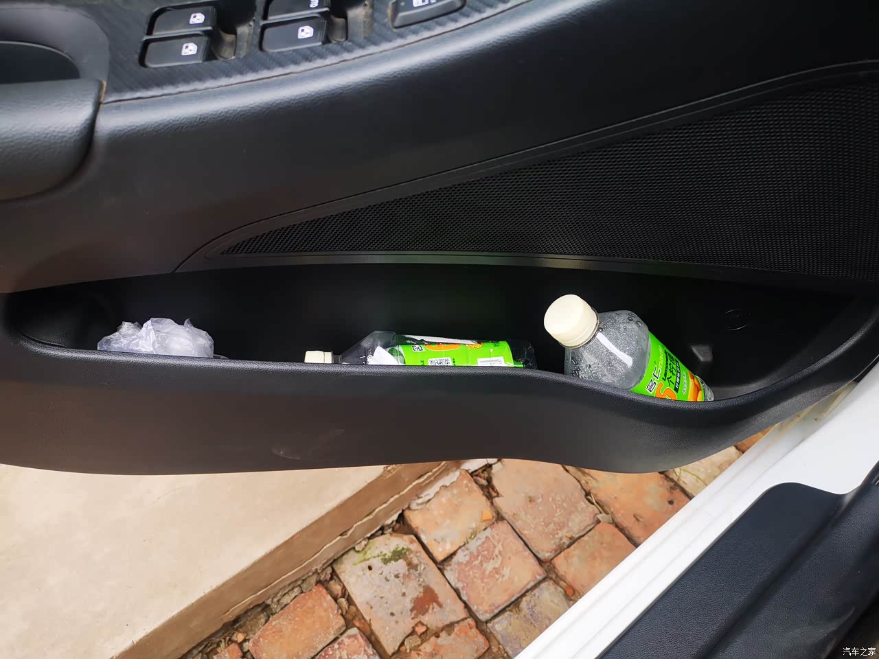中控台正下方是一个储物槽,可以放置手机及其他杂物;四个门板的储物格都非常实用,正常的矿泉水瓶可以至少放下三瓶;中央扶手箱的储物空间也是比较实用的,平时放置保暖水杯、大的茶杯都是很容易的,尤其它的纵深不错,比较高的杯子或者其他物品也可以放入其中