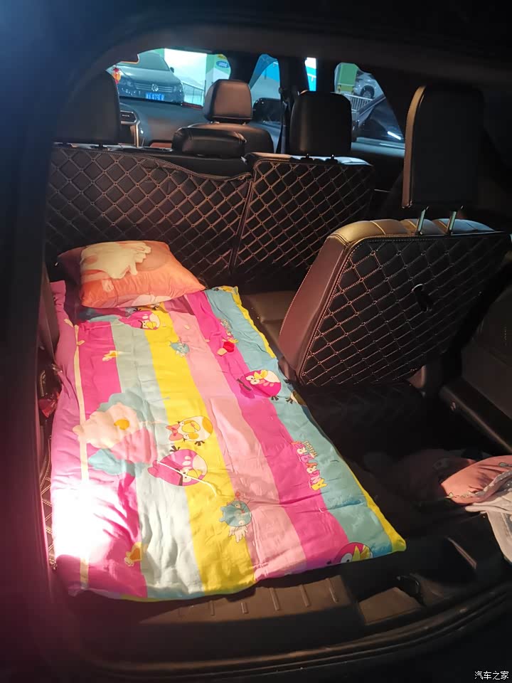出去玩的时候后排放平,孩子跟媳妇都在后边,可以坐着逗孩子,也可以躺下睡觉。