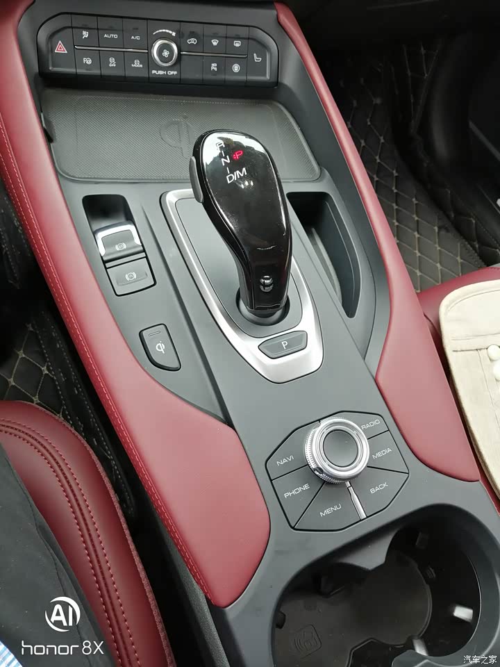 我要的酒红配色,感觉非常上档次,能摸到的地方都是软的,这一点哈弗是有了很大进步,其他的我发照片自己看哈。还有就是中控台的鸡腿档把,换挡特别方便,轻轻拨一下就可以完成换挡,非常人性化。中控屏幕是高清屏,这里就要特别说明一下了,哈弗f7x的全景影像是我见过车里面最清晰的,没有之一,这里长城确实下了功夫,还有一个需要特别强调的就是车内味道,用的皮子多但是味道不大,这个也是哈弗车系的一个特点。