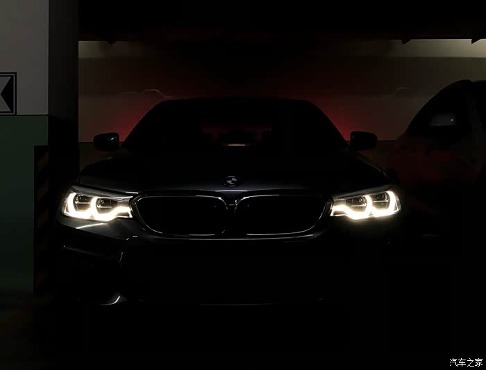 超酷的勺子灯,530i标配,夜间远看,攻击性很强,G30这代前脸进气格栅和灯都被拉长了,感觉凶凶的…