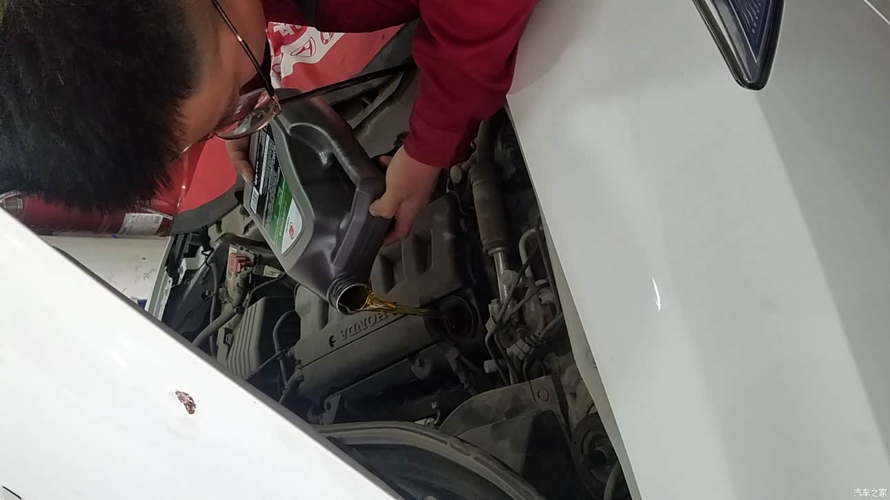 汽修小哥不用漏斗不用加油器,上来就瞄准了一下就是盲倒,不得不说真是熟能生巧,机油放得还算是比较干净
