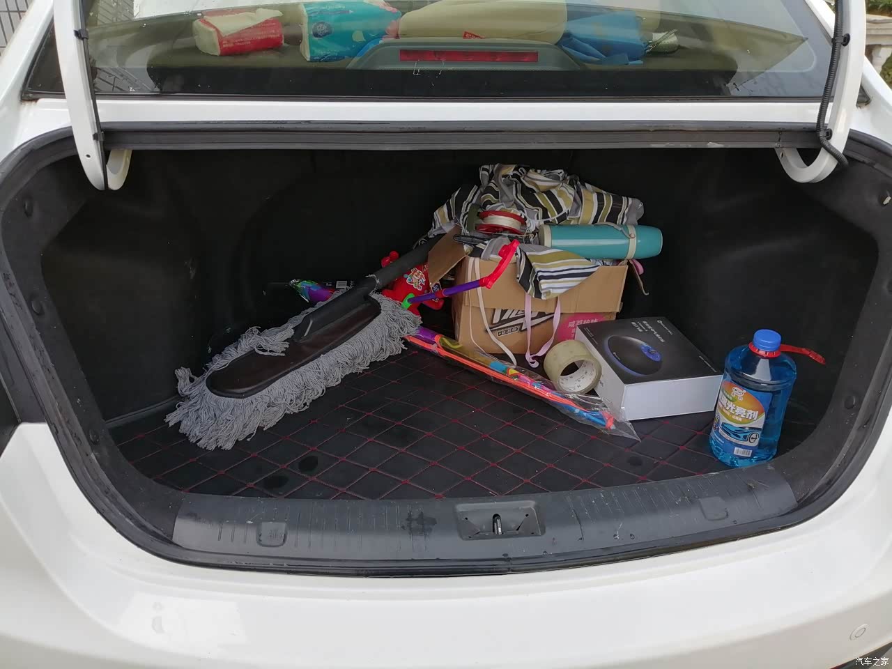 杂乱不堪的后备箱。