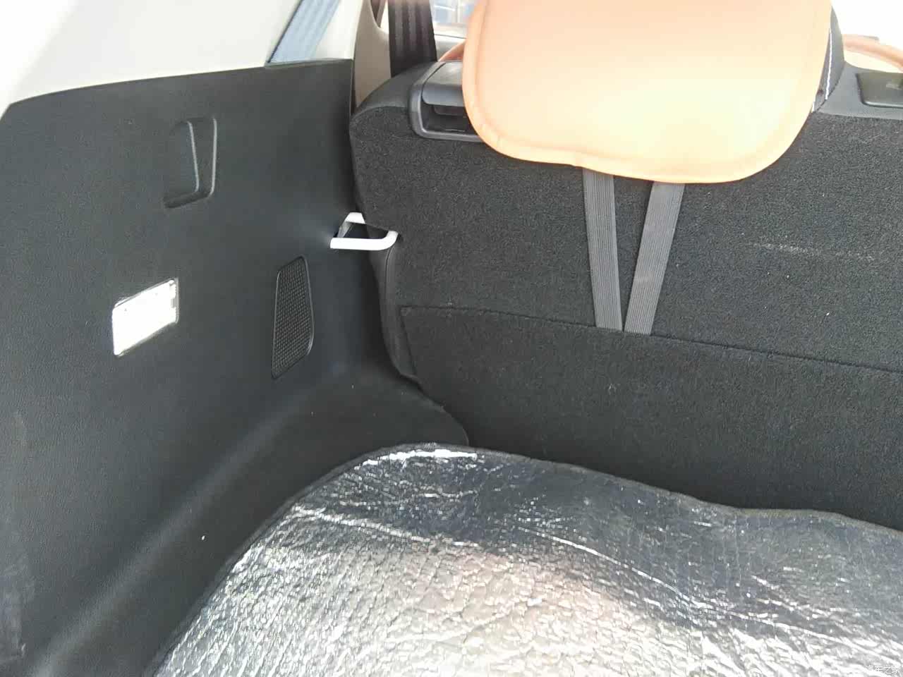后排座椅放倒的挂扣,按住上面的按钮可以脱离白色的车扣,然后放倒车后排,空间立马大了不要太多