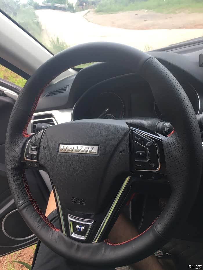 方向盘很舒适,自己也装了个手缝方向盘套。