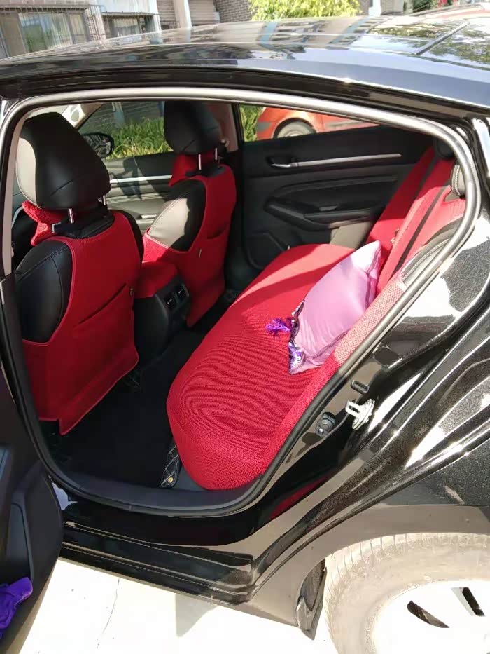 后排坐着三个人也不拥挤,前排的空间也都很充足,一家人都在里面很宽敞,后排翘腿都没有问题啊