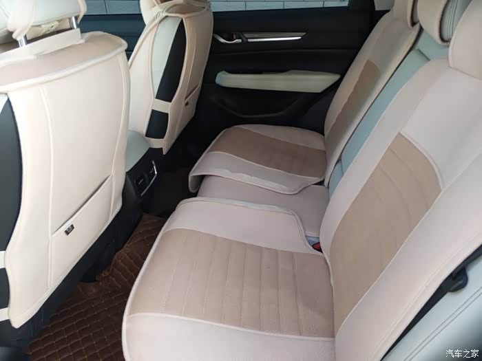 内饰的包裹材质都是不错,摸起来很柔软,窗户下方的材料也不是塑料壳,但是后排座椅中间脚踏处的凸起,影响了后排人乘坐员的舒展感,坐的时间稍长会非常难受,再就是座椅感觉有些硬,建议买个柔软点的座套。
