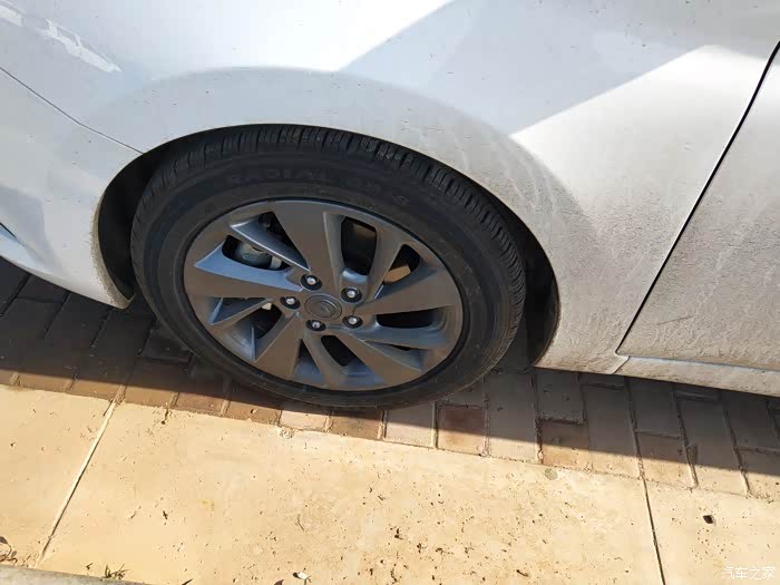 这个轮毂是灰颜色的样子,看起来也特别凌厉,轮毂还是特别好看的。