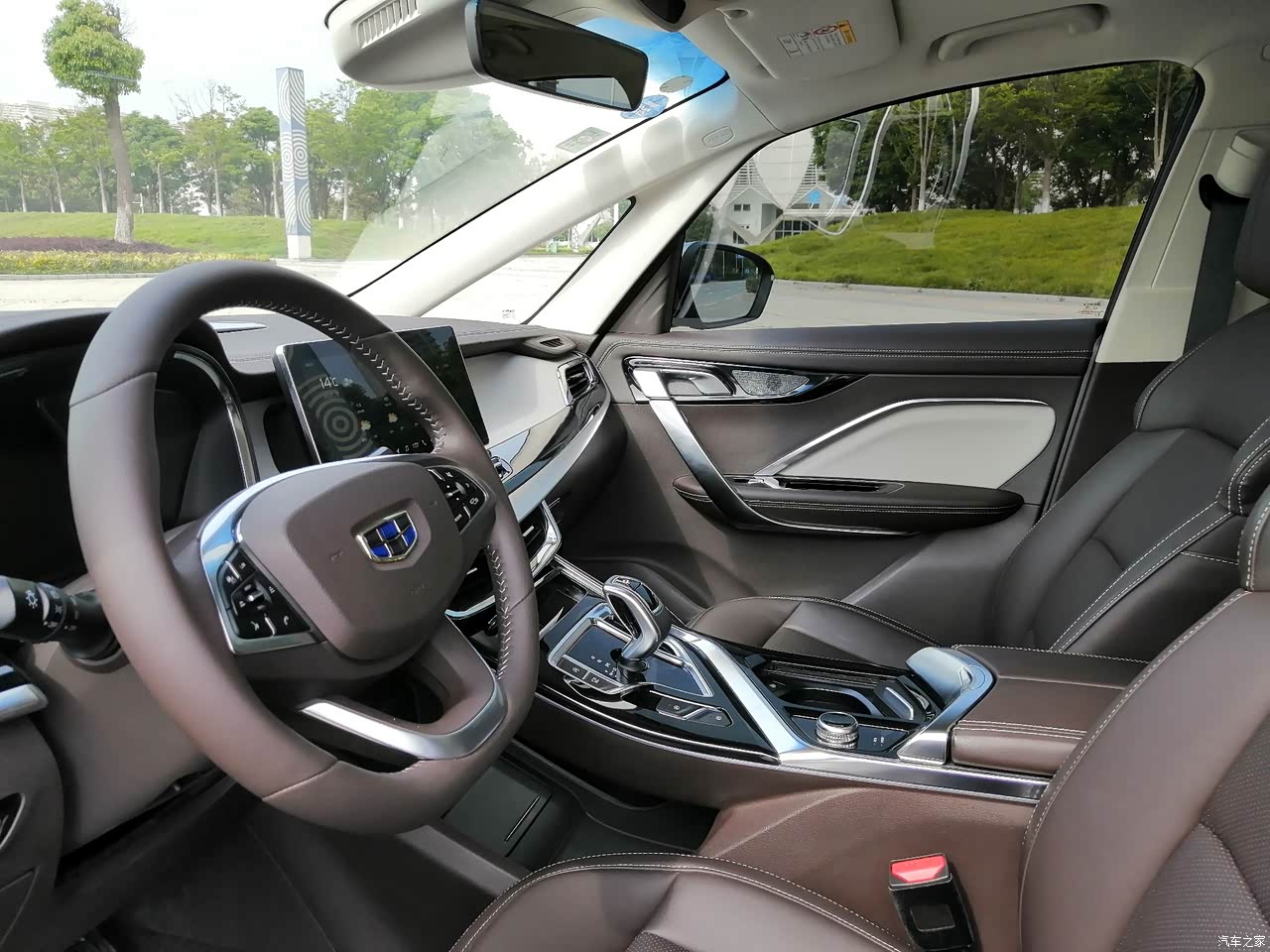 内饰最满意,真皮座椅方向盘,新车没有异味。全车软包,中控台和车门也是软质包裹。12.3英寸中控大屏,7寸液晶仪表,72色流光氛围灯调节,浅色系内饰显得非常清爽。