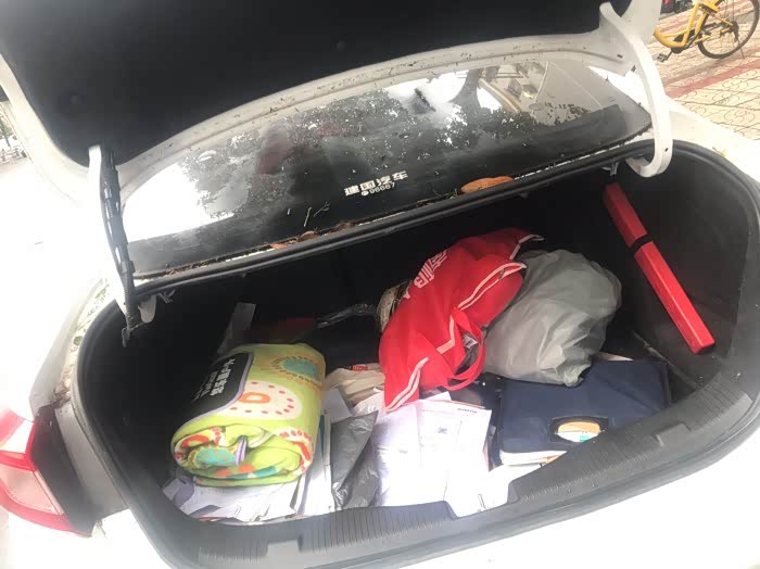 后备箱塞了很多资料,很凌乱!不过很能装,稍微收拾一下还可以装四个18寸的行李箱!本人亲测!