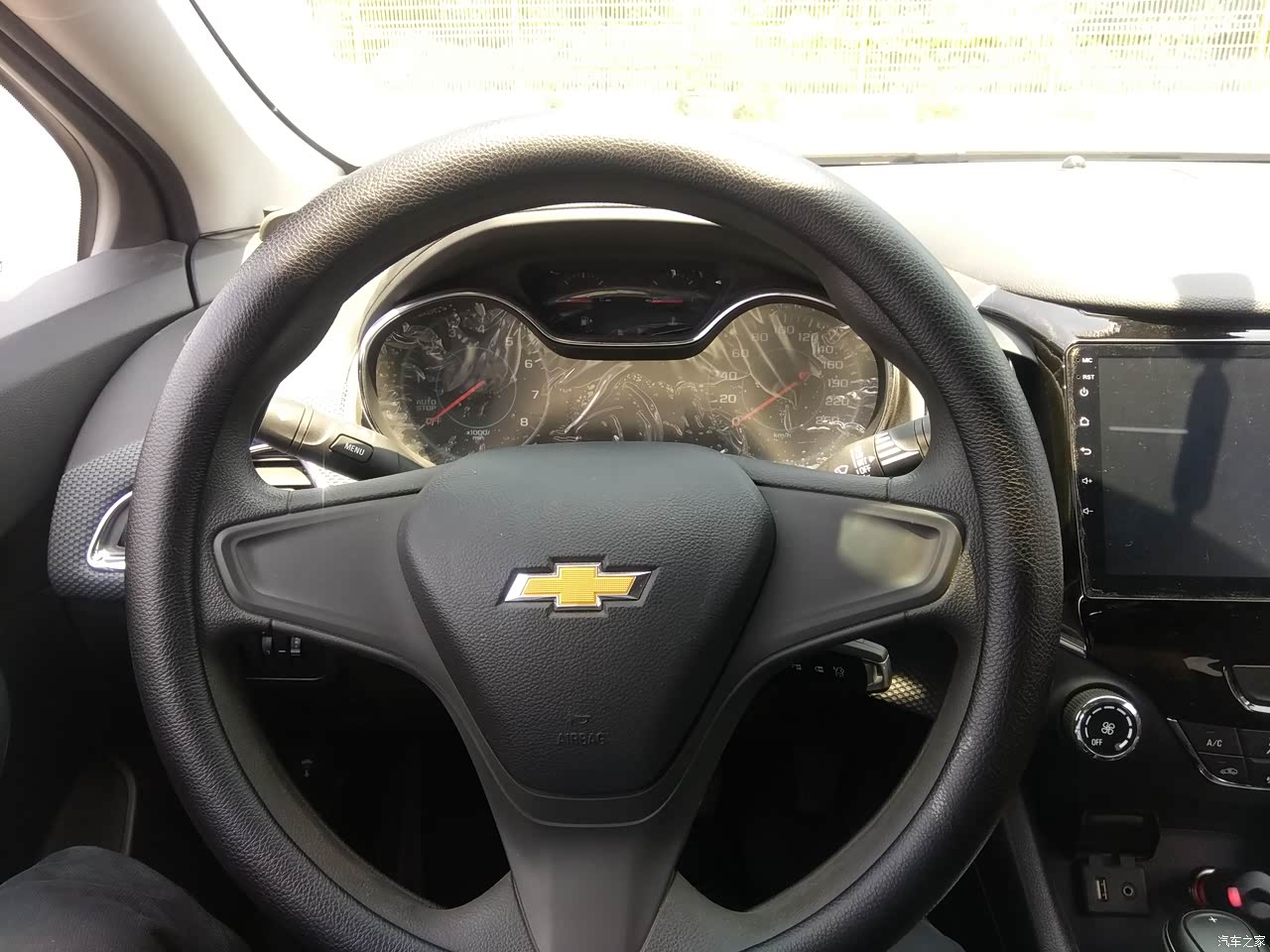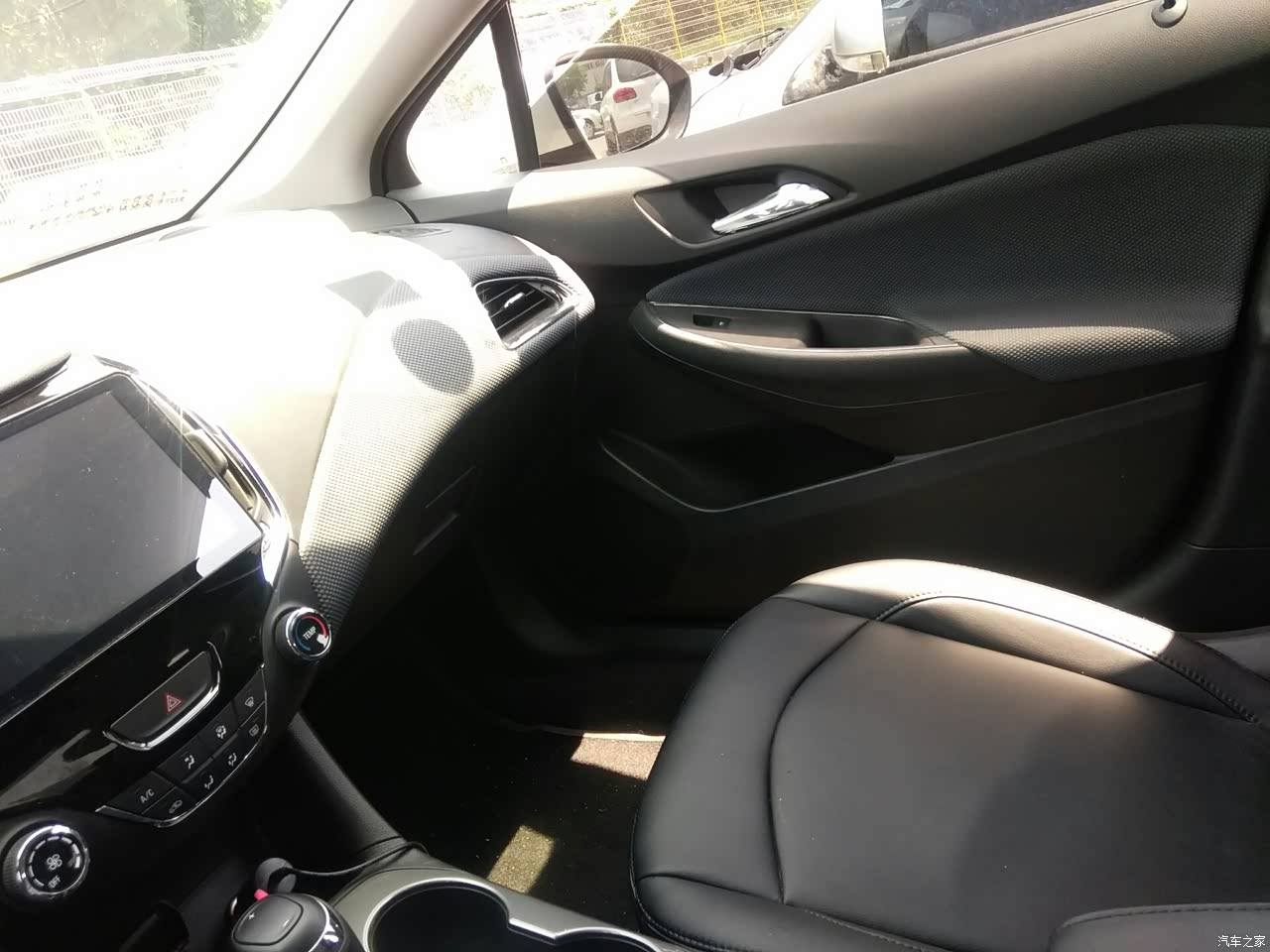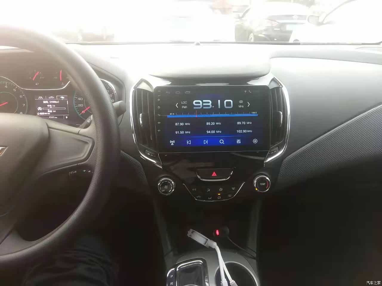 科鲁兹内饰以黑、灰为主,总体做工一般,我的车新提时没什么异味,目前也没有发现有内部异响;原中控不带倒车影像被我换成黑色9寸大屏,添加了倒车影像、雷达,关键是还能和我的安卓手机连接;布座椅给换成黑色皮座椅了,容易收拾不容易脏;其他的车内部主要都是黑灰色的硬塑料,操控台周围车顶部包了一些灰白色的布,用料一般没亮点。
