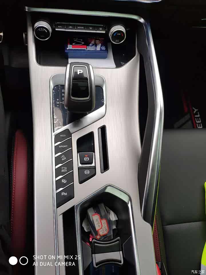 这个电子档杆很精致 握在手里手感也很好 冰冰凉 旁边排了一列常用功能的按键 有自动泊车 全景影像