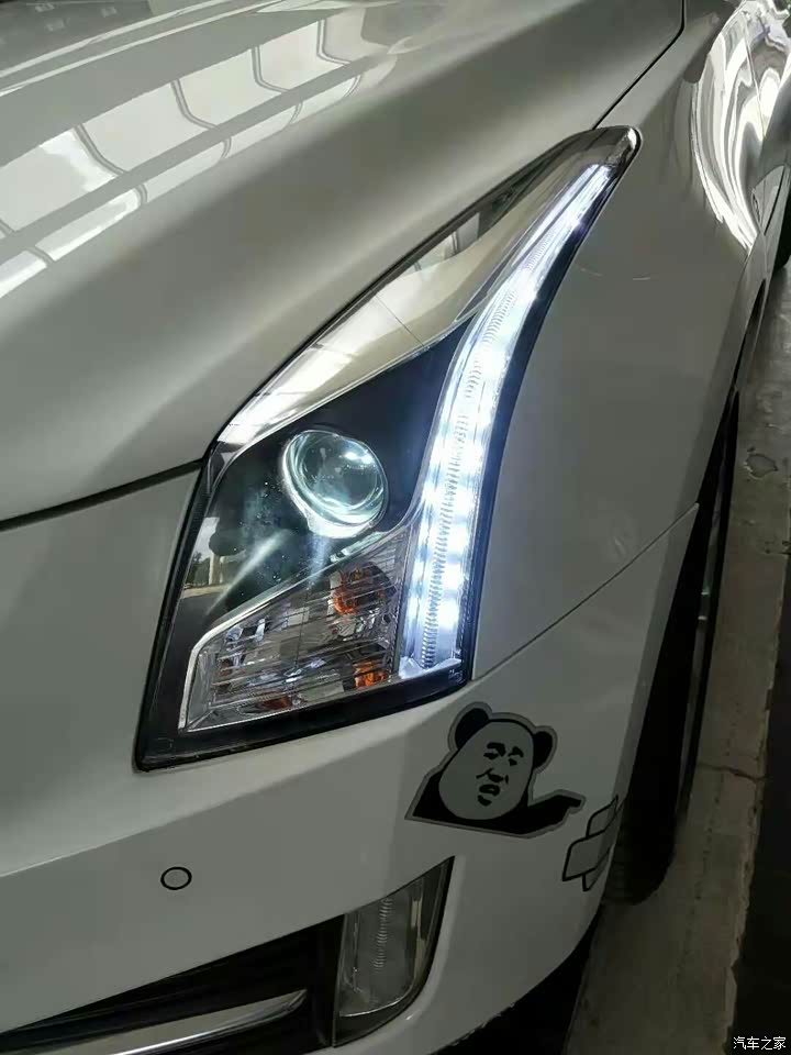 车灯别具一格,很鲜明,一眼就看出是凯迪拉克了,整个车身的线条也是很有力量感的,只不过那个原配的大灯有点漏。