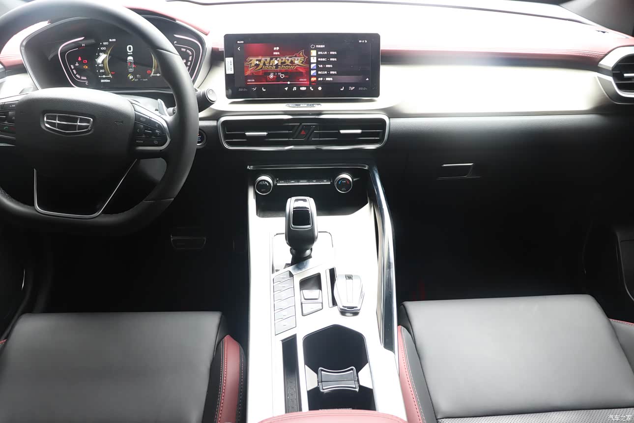内饰的配置还是很丰富的,中控屏是我很喜欢的,很智能。内饰的线条缝制像是手工缝制很细致,座椅也是真皮的。档位旁边这个把手,我很喜欢,右手有时候不知道放哪里就把住这个东西。