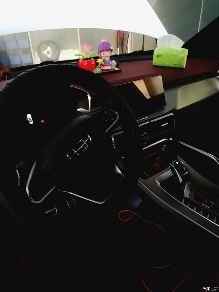 座椅是皮的,前中控台上也是红色的皮质,看着有质感,而且颜色搭配耐看!