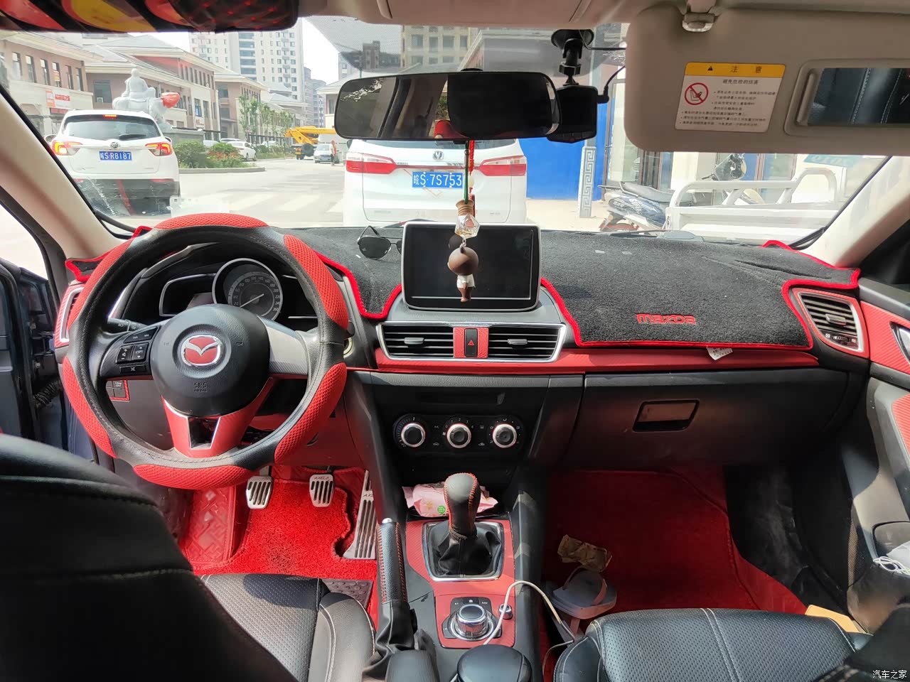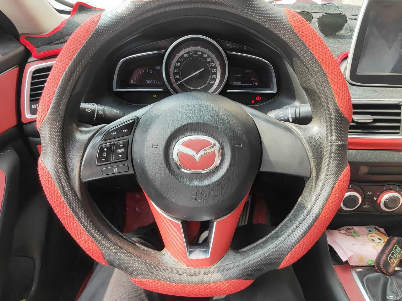 目前虽然车子有点旧了,没有发现哪里异响的现象,一切使用正常,自己搭配的黑红相间的装饰,非常抢眼,个人比较喜欢。多媒体控制部分比较好摸索,不看也能找到控制部分的按键。