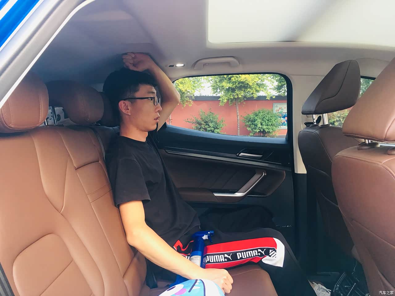 后座空间拿老公做个实验,坐在后座上面还有一拳的距离,足够用了。家里人乘坐时也是认为空间很大,比较舒适