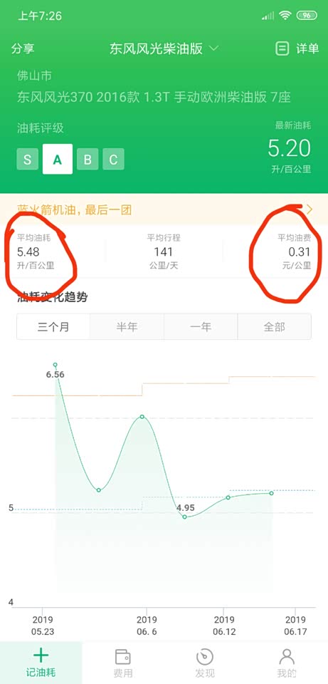 最满意的就是油耗,之前的荣光不开空调要6.5个油,开空调的话可能要7.5个油了,这车开空调市区最多也6.5个油,综合来说也就5.5到6个油左右,我在郑州买的二手车开回广东上牌1500多公里加了500块油全程高速110左右,回来广东后到目前加了244升跑了3833公里,平均5.5左右,相比较荣光综合一公里省1毛5左右,