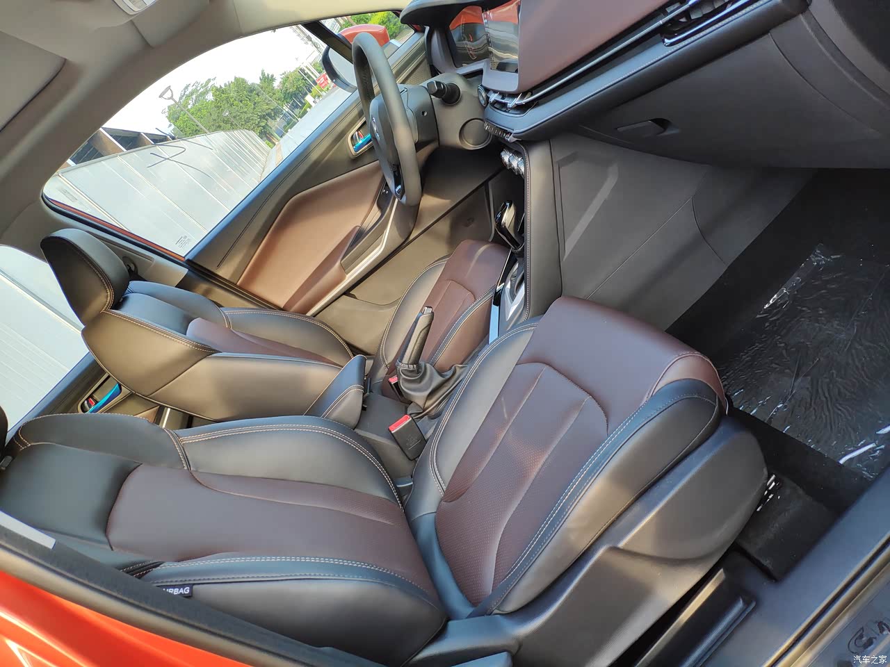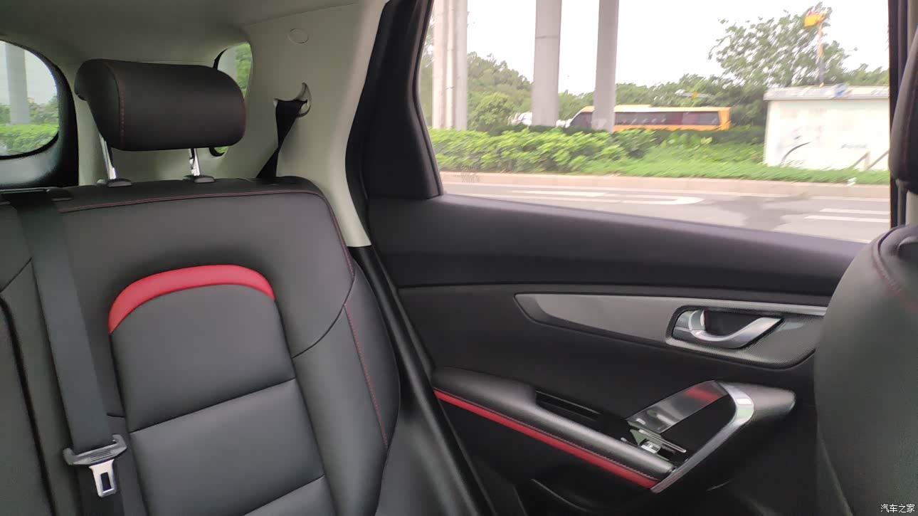 座椅皮质比较柔软,乘坐舒适,新车也没什么异味,悬架比较硬