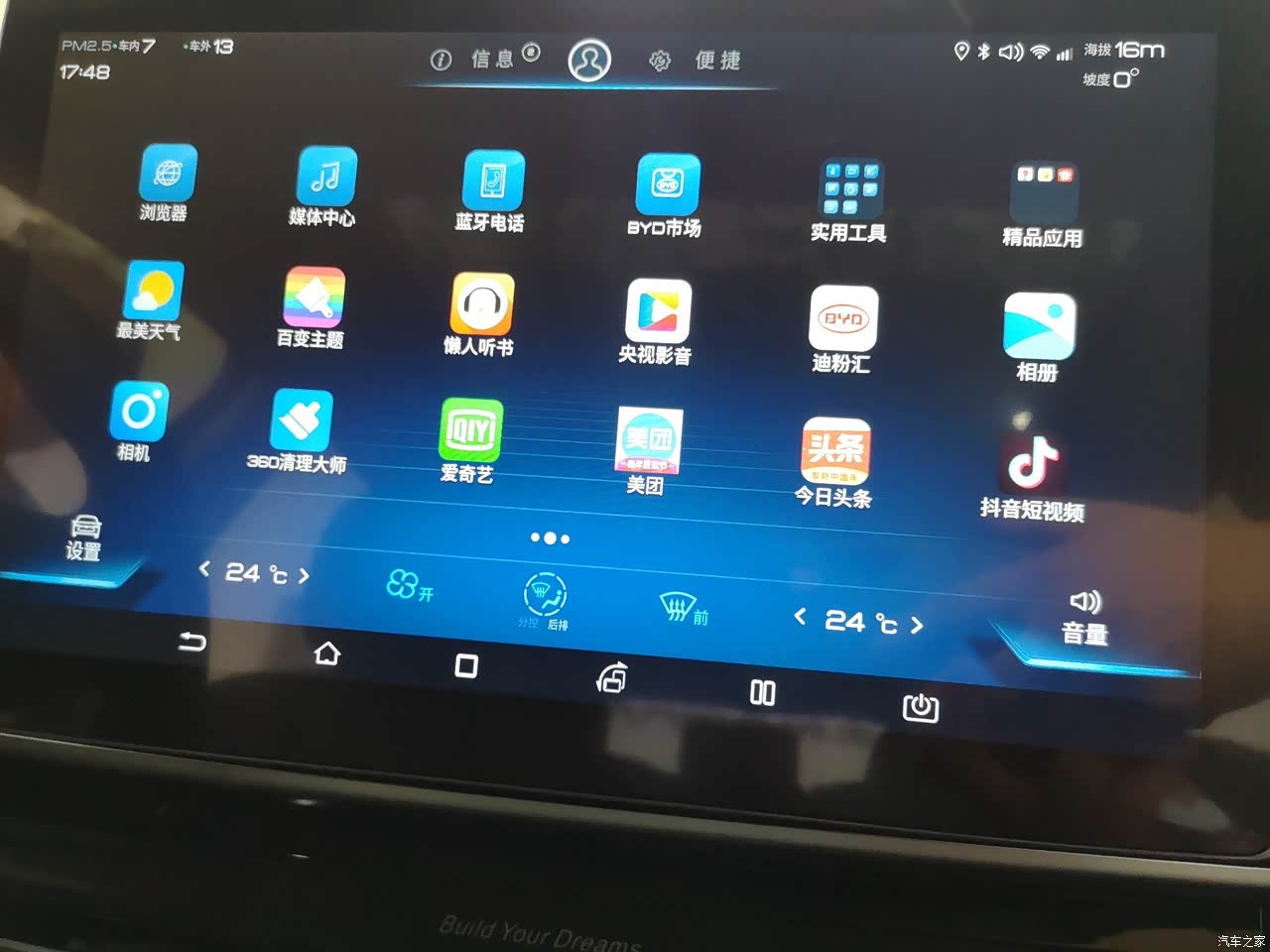 还有音响,声音很大也不会破音,小孩子最喜欢12.8英寸的那个中控屏,可以在车里看动画,玩游戏还有各种APP。