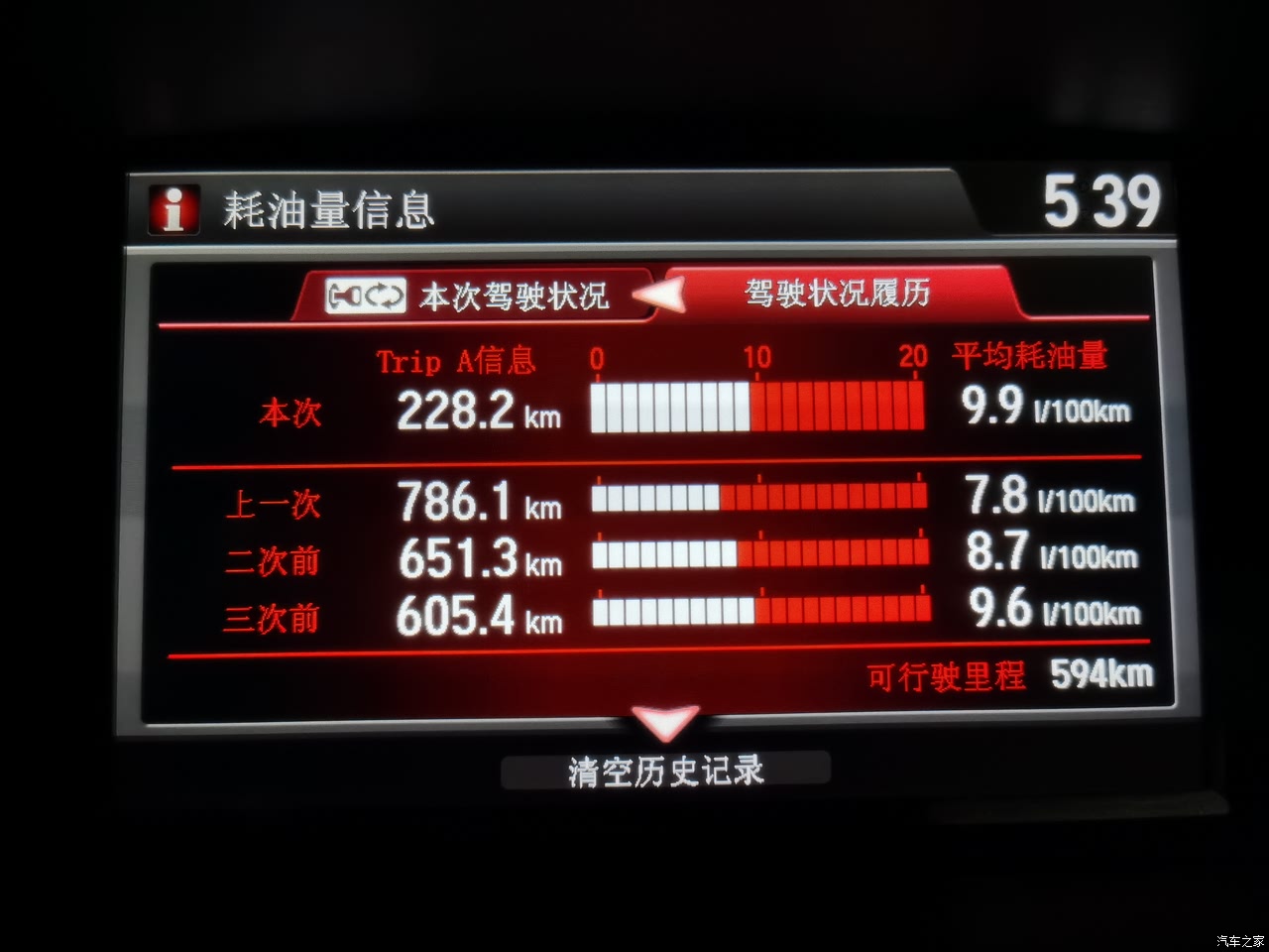 综合油耗9左右吧,也没仔细计算过,市区开6.1-10.5的油耗都开过,主要看心情;高速120巡航8升油整。开到亮灯去加油加到自动跳枪大概65升左右,纯市区能开650公里左右,纯跑高速900多,开到亮灯能跑1000公里没问题(路况好的情况下)。