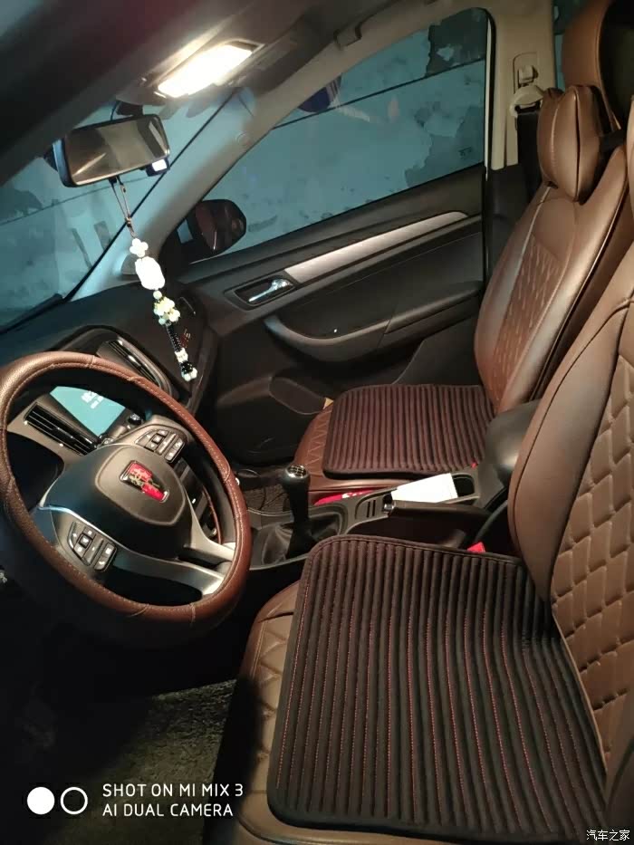 套了一个棕色的座椅套,看起来会高级一点,