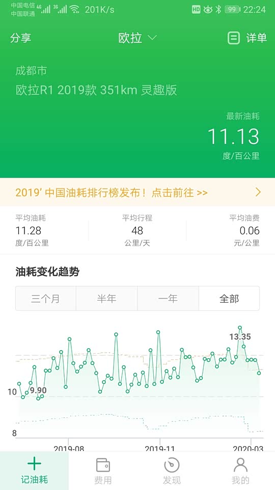 随着成都天气回暖,电耗基本上控制在11度左右了,基本上跑到300~330的样子反正和自己开车的方法有很大的关系,反正我是不得省电,咋个舒服咋个开。😂😂能开100,绝不开90。。当然前提是安全第一哈,遇到大车还是必然,我们毕竟是小车车,走的是灵巧轻便路线,不是坦克路线。