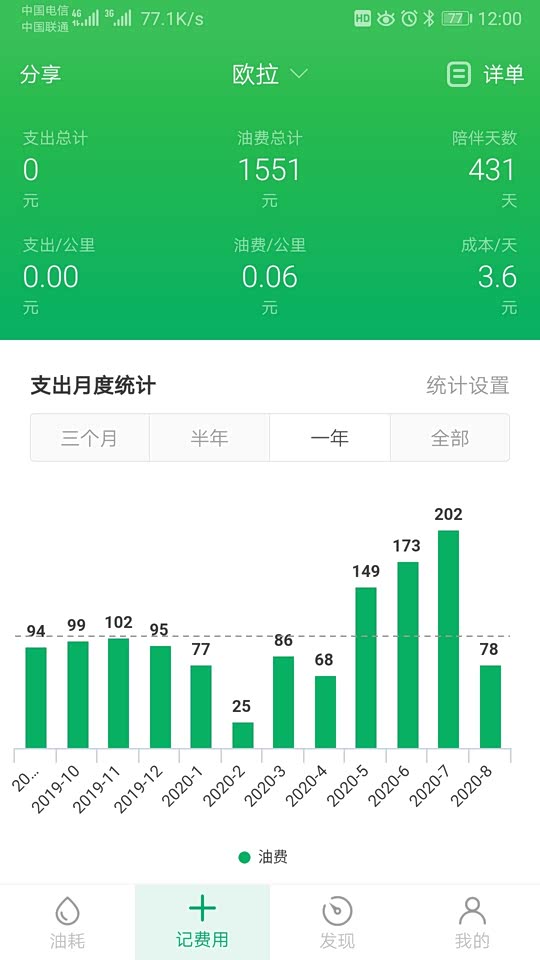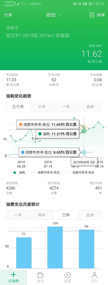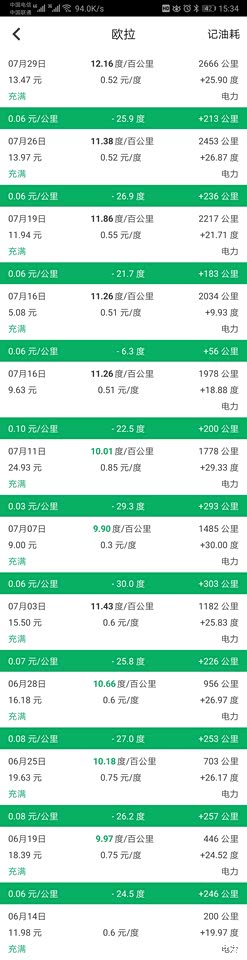最近夏天来了,空调开得很勤奋,基本上是去通勤代步的话,续航在300~320之间波动,也是城区道路市区道路综合跑嘛,周末有时候去一下稍微远点的地方,大概来回就200公里左右,反正空调开三档以上要稍微费一点点,人多了要费电点儿,速度快的要费电点儿,都习惯了。这个电动车开空调一点儿都不心痛,如果这个天全部空调的话,那简直就是免费桑拿了,遭不住,自从有了这个车,夏天空调从来没心痛过。用着潇洒才是王道。反正按照这样子12度的话美工的反应就是7分钱的样子,完全不心痛,每个月感觉开少了才是心痛,太多了完全无所谓。