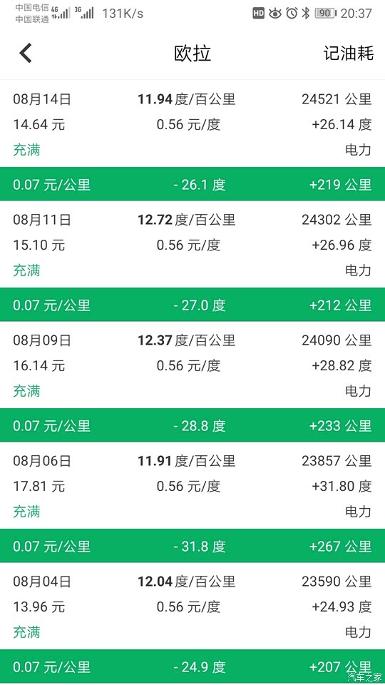 基本上平均电耗11度多,在合理范围之内,反正暴力驾驶。