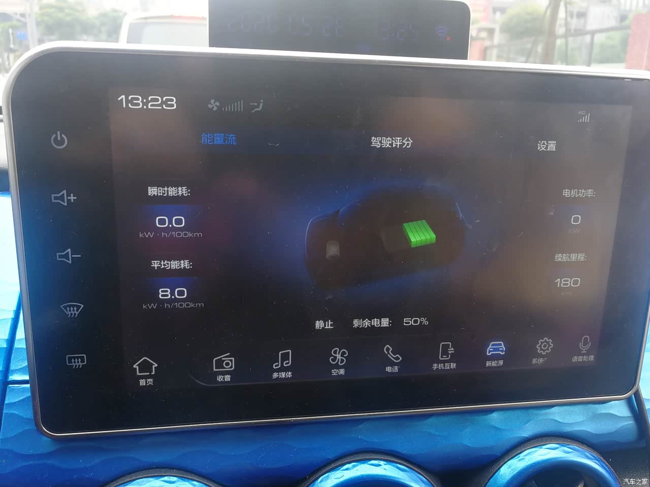 现在平均下来100公里就是十度电左右,这个店后我觉得很不错了。个人开车还是比较猛的,夏天家基本上是空调带上。如果打开ecO,在温柔驾驶的话。续航里程应该是可以逼380到400。我个人觉得相当省电了。????
