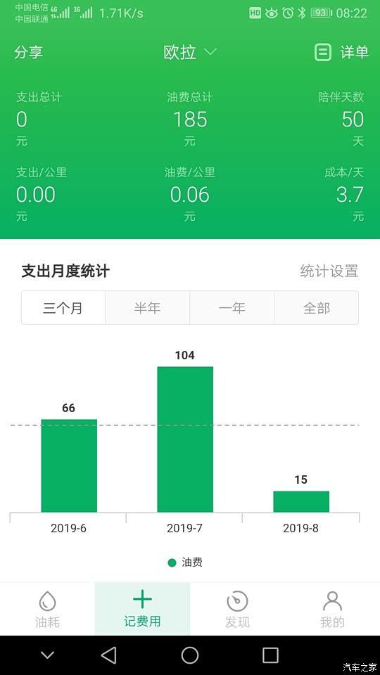 平时基本上开车都是我一个人,我基本上就是在50-80公里就去充电了。跑了的公里数加续航基本上是330公里左右,只有高跑高速一次速在310里左右。夏天上车全程空调,开车提速比较猛,基本上是城市道路。