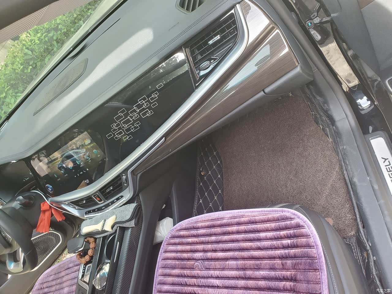 内饰总体有亮点,12.3寸液晶仪表盘,上档次的中控扶手,个性的“假飞机”档把,还有中控台的软pvc,具体是什么材料做的,不清楚,反正是塑料,统称PVC。这里要说的内饰硬塑料接缝的地方稍加用力会咯吱响,我去4s看过了,全吉利新款都是,比如大屏面板接缝,方向盘底下那个v型硬PVC,扶手等,只要硬塑料地方按压都会有。希望厂家改进。总结塑料磨具不到位,贴合不紧密,有间隙。近20万车这个系节不到位。这个不影响整体档次。