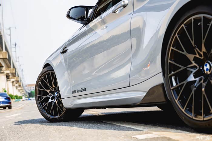 想你m2 m2c车身棱角更明显 一体式的熏黑中网也让小车更有战斗感 降低了的车身更贴地面 格外凸显车身宽体