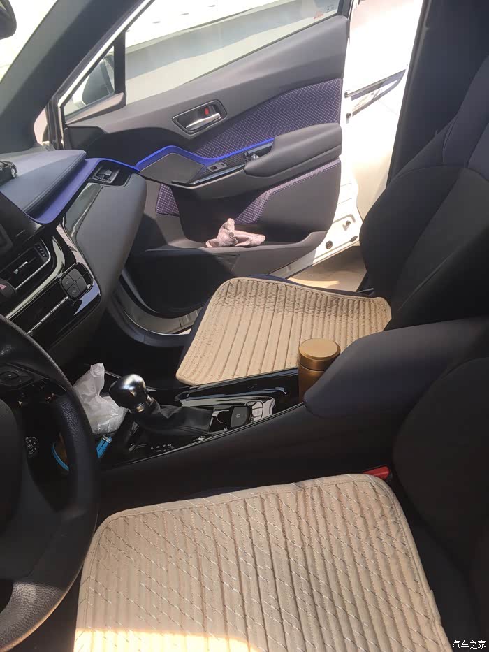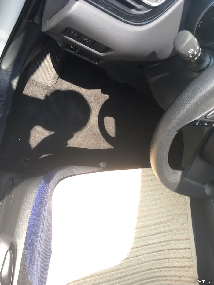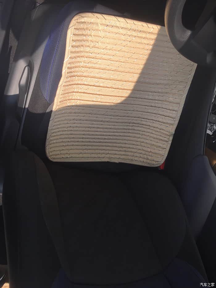 座椅的舒适型还不错,腰部这个地方位置挺舒服的。但是这个价位的车配置竟然是织物座椅呀,真的是无法理解。虽然蓝色和黑色搭配起来比较好看,但是织布座椅在这个价位是不是有点儿low?