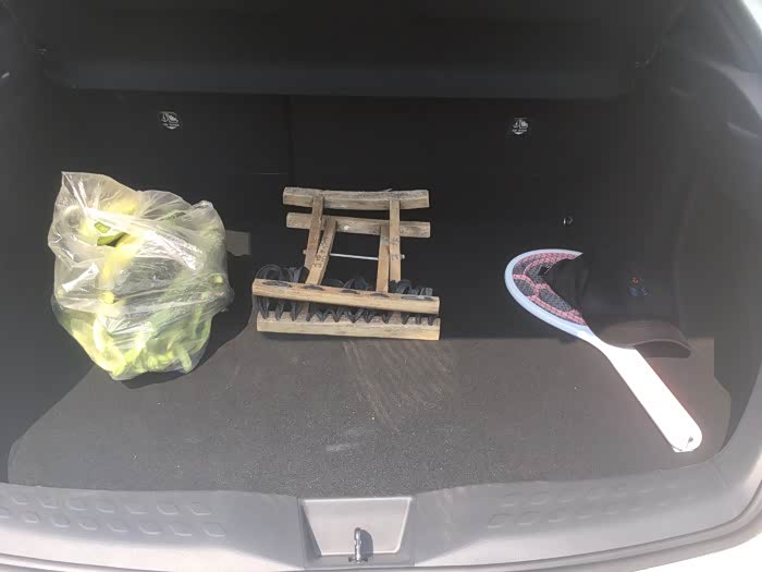 后备箱的底盘非常平整,开口处很大,这也是我喜欢SUV的地方,不管多高,多大的东西都能放进去,不像轿车在开口处就给卡住了。因为我们小两口儿都比较喜欢出去玩儿,爱赶海,经常带一些帐篷呀,烤箱呀之类的,放起来超级方便。我甚至可以坐在后备箱上换衣服,超合适有没有
