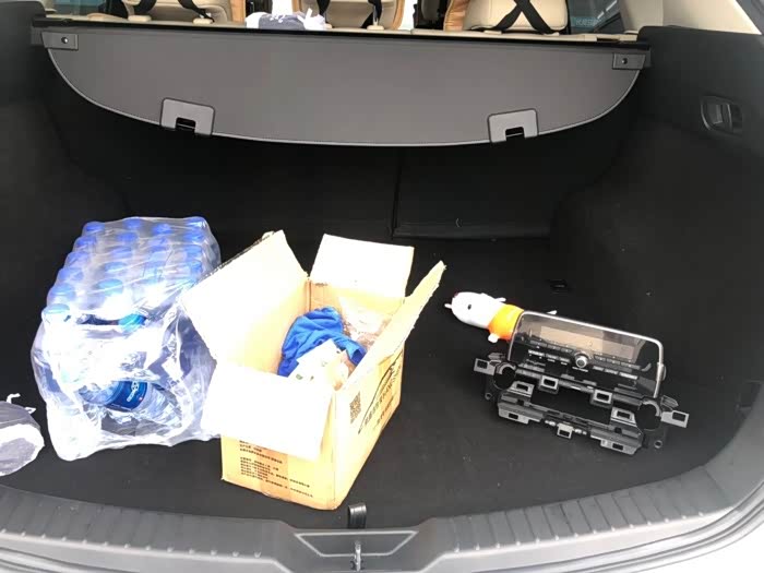 后背箱空间还是很大,平时就放这些东西,加装导航,贴心的小姐姐也把原厂的收音机还给我