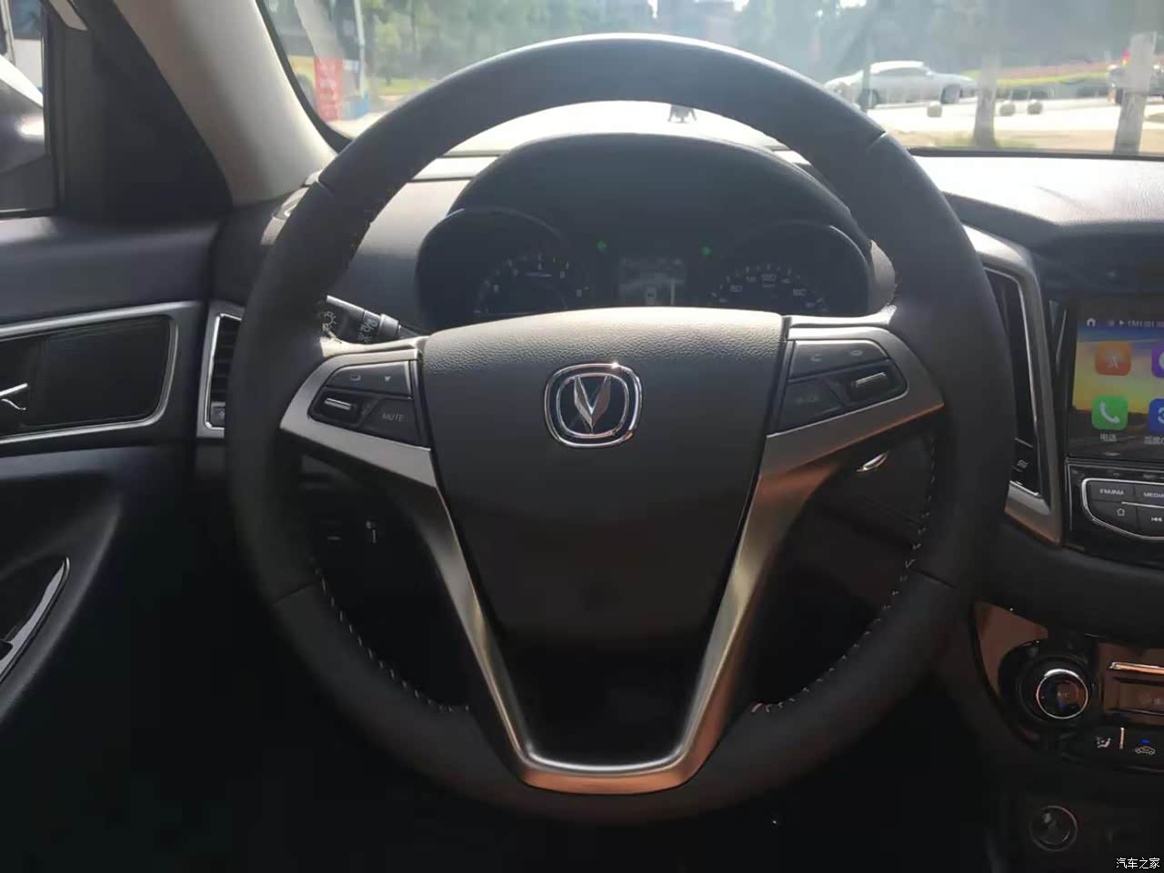 多功能方向盘,接听电话,切换歌曲很是方便。