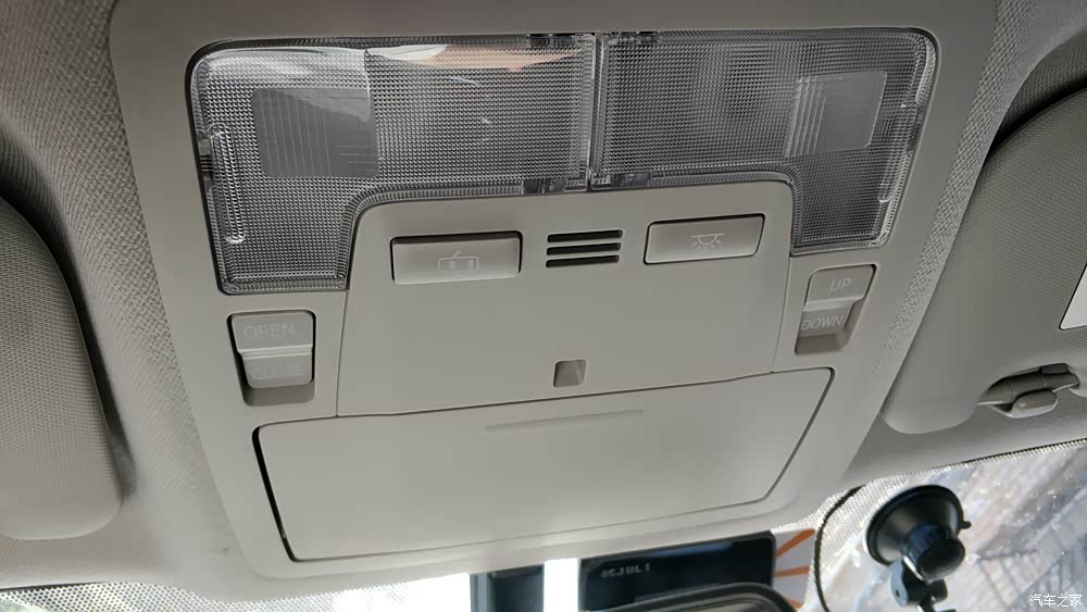 浅灰色的顶棚、阅读灯和天窗开关。