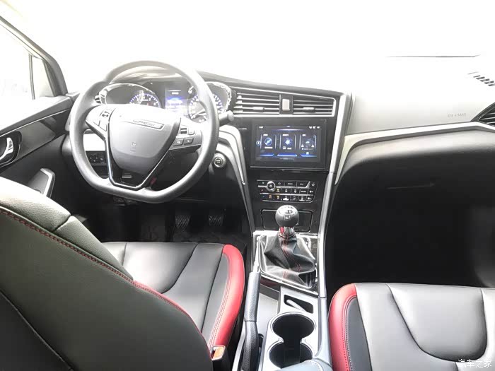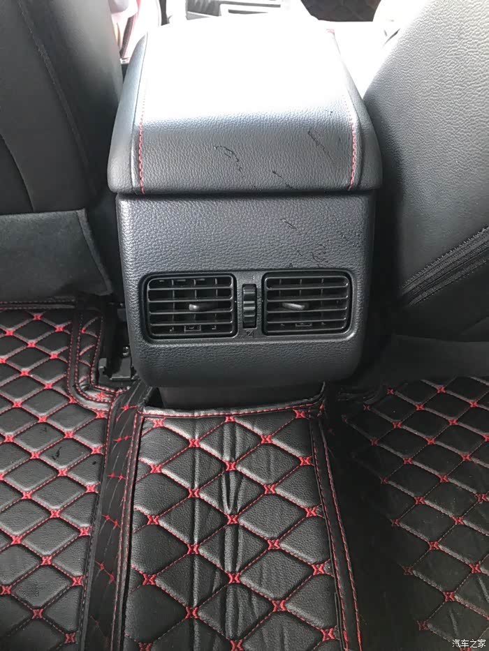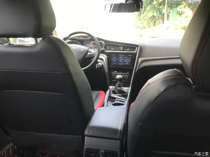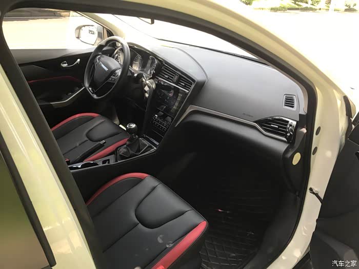 深色内饰,很容易打理,还有红色缝线红色边打破单调,让整个内饰鲜活了起来