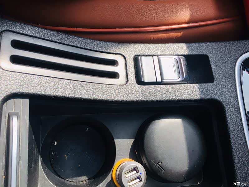 在中央扶手后面,也设置有小小的收纳盒跟充电用的USB口,坐到后排的一般都是大爷,特别懒散的状态,开车回家,那都是手机不离手,又经常没电,所以后排这个设计挺好,他们再也不怕线不够长,坐着向后趟也能随意充电了
