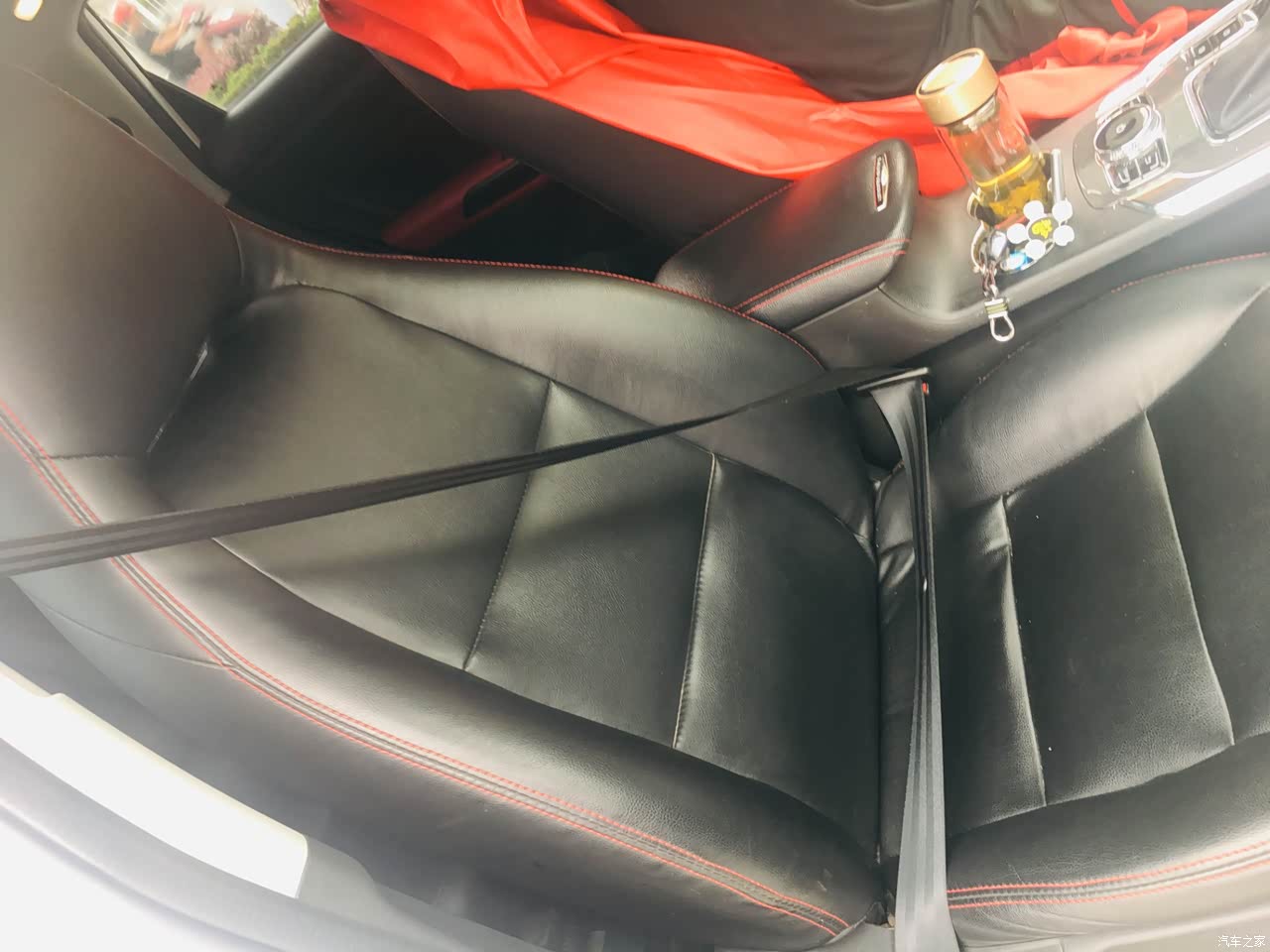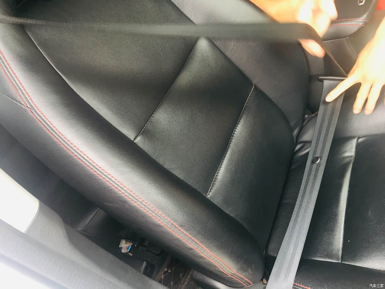 内饰材质非常精细,没有多余的线头,红色线游走在车内,再加上红色的装饰,搭配黑色真皮,非常动感时尚,大气有档次