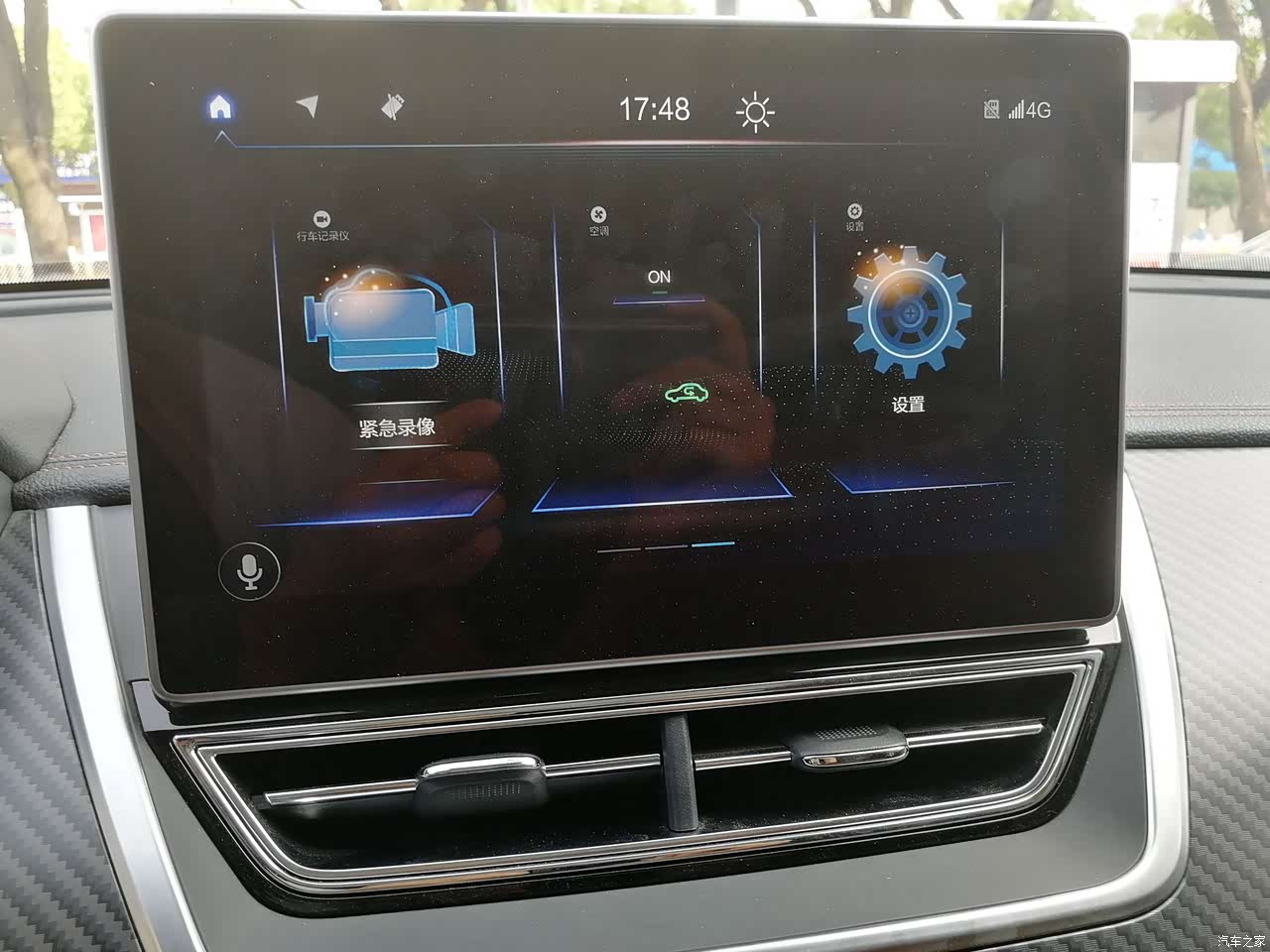 内饰整体感受还0K,中控屏下方按键的科技感还不错,车辆启动才显示出来功能键,熄火状态是看不见的。