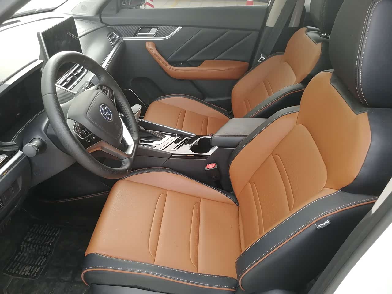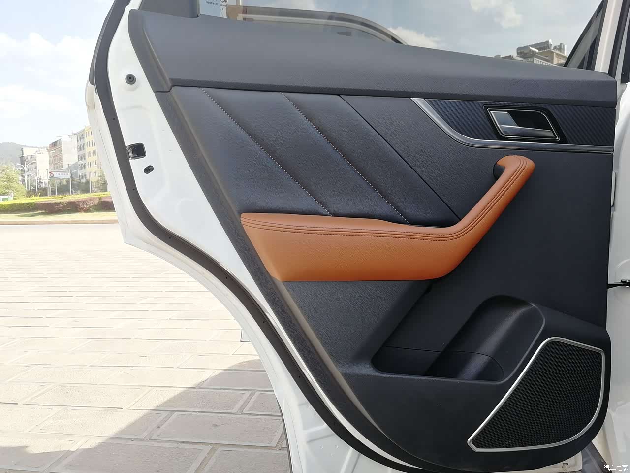 侧门的内饰包裹还可以,手肘触碰到的橘黄色地方是真皮材质。