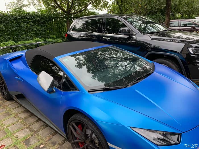 原色是很普通的黑色,被我贴了膜改成蓝色了。对比起来差很多,超跑还就是要炫一点的色才好看。