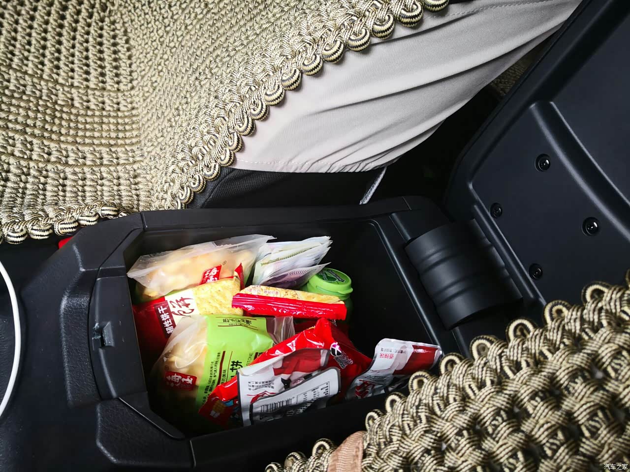 前排储物盒,储物空间也不错,已经被老婆的零食攻占了