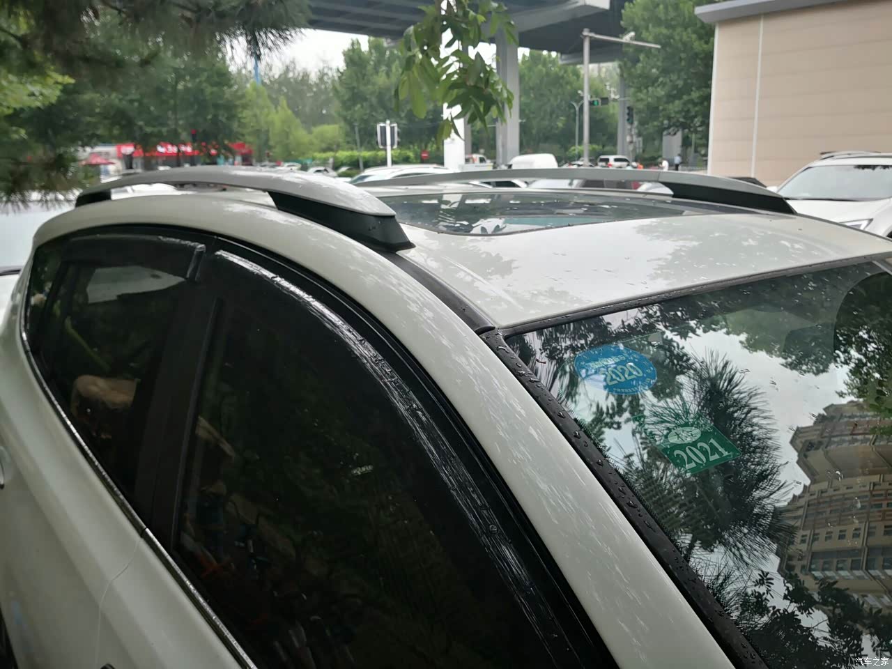 天窗虽然够大,但开启面不大,鉴于因为生活在北方,城市空气质量不太好,用的不太多算是还可以接受吧。行李架是后装的,装饰越野气势,但不实用。