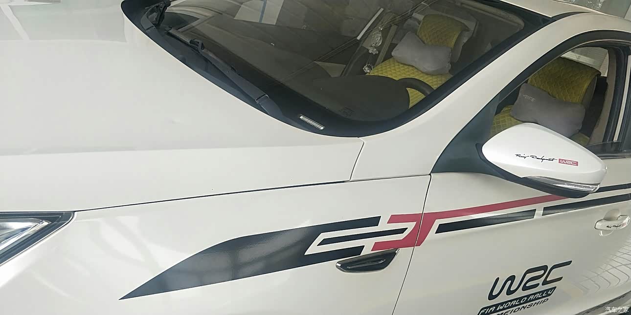 车身造型设计靓丽,修长的车身,加上我自己贴的贴画,有没有更加的上档次,漂亮很多,车灯设计的远近光分体设计,夜晚行车比较安全,唯有车身车门后面出现了长锈现象,才四五年的小车,有些失落