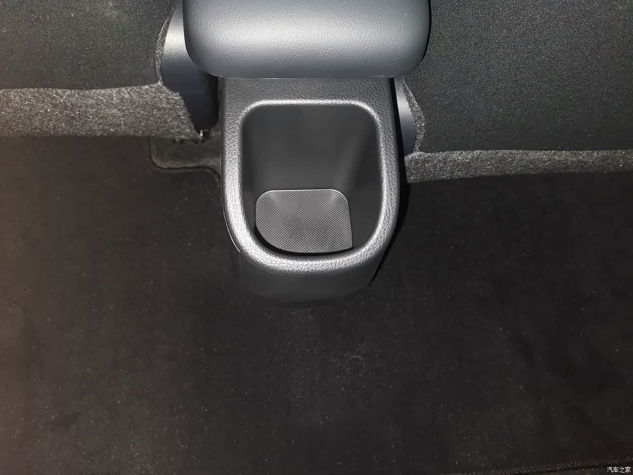 后排的地台很平整,坐中间的人放脚也很舒服,这一点确实很好;而且中央扶手后面有个储物格,放个手机也方便